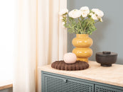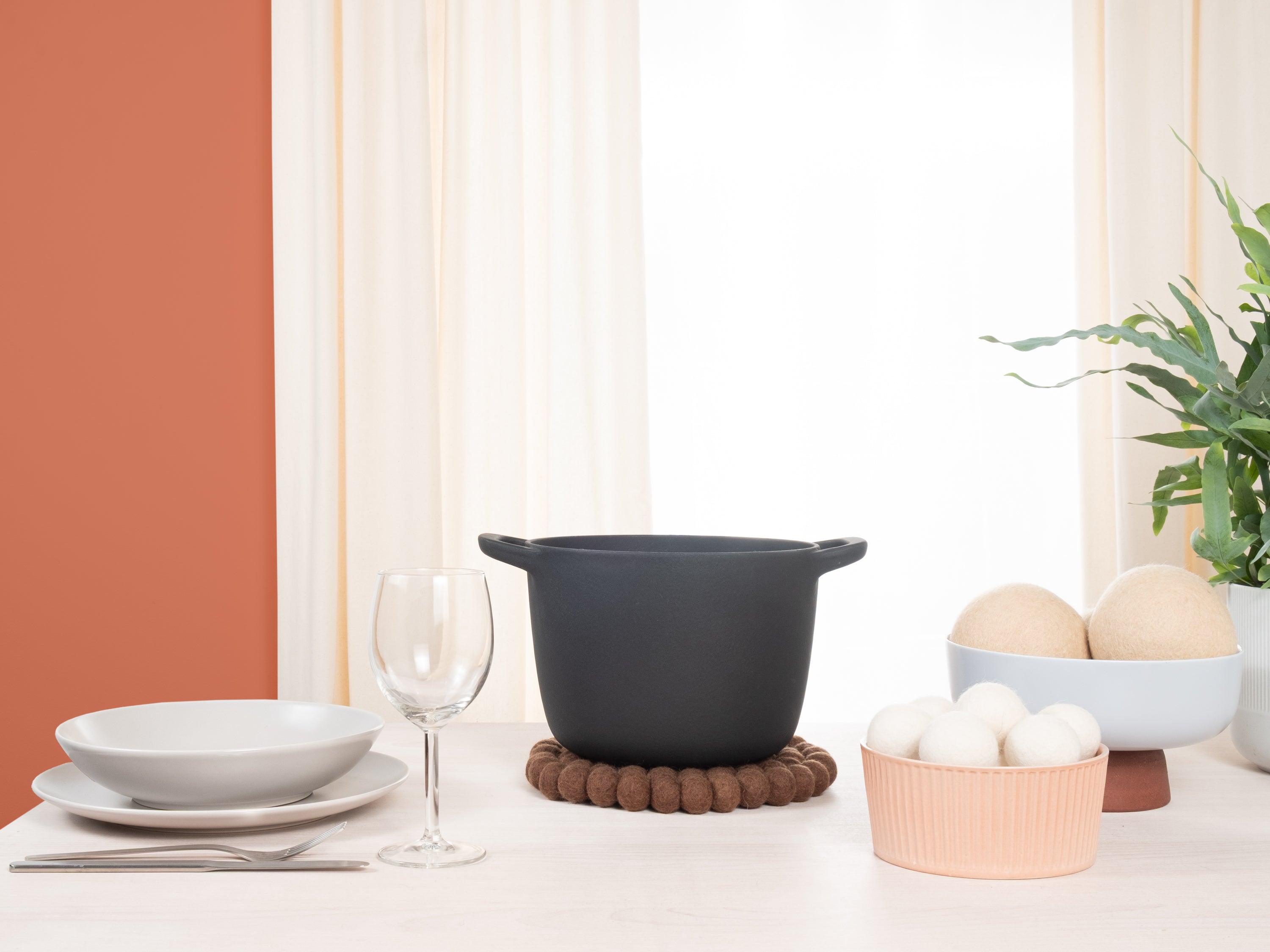 Runt, brunt grytunderlägg av ren ny ull | myfelt