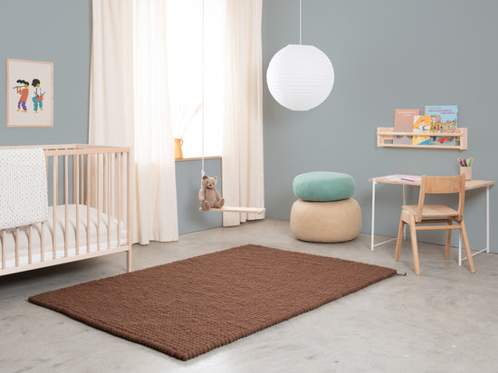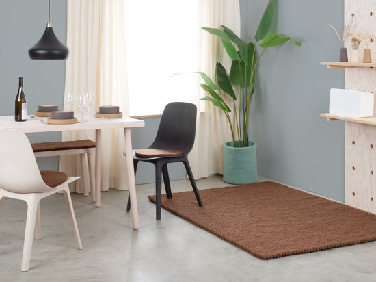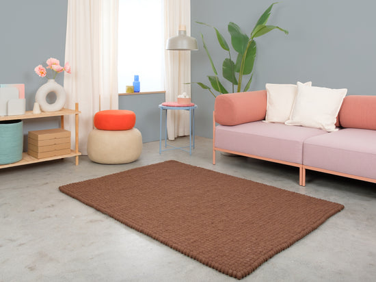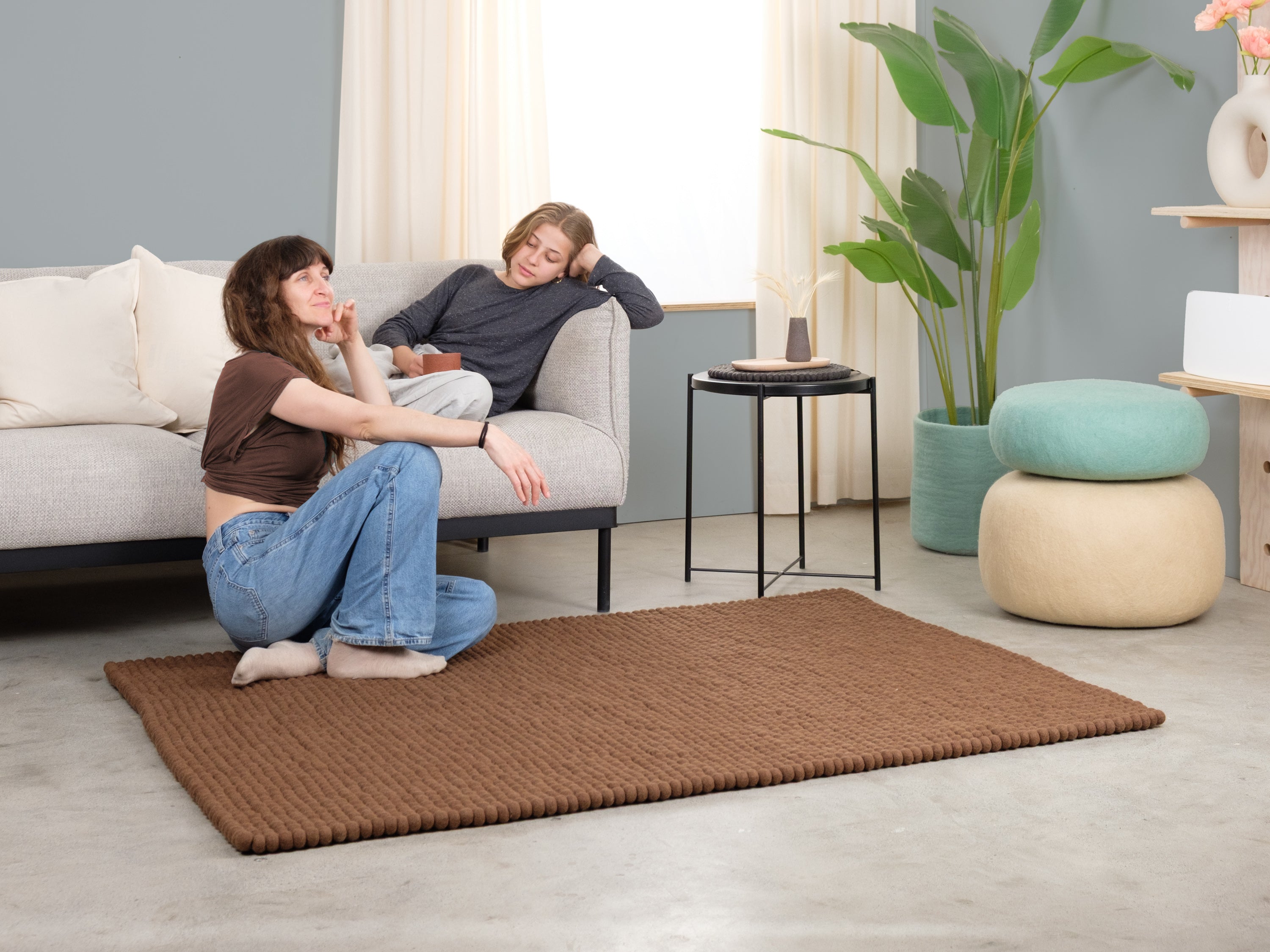 Egon satsar på varm chokladbrun. Filtbollsmattan förankrar varje rum, skapar trivsel och struktur. Perfekt för läshörnor och vardagsrum som behöver värme. Slitstark, formstabil och behaglig att gå på. Handgjord i Nepal – av 100 % ren ny ull.