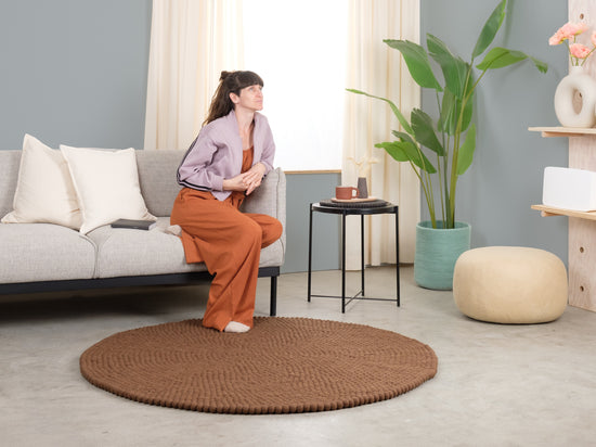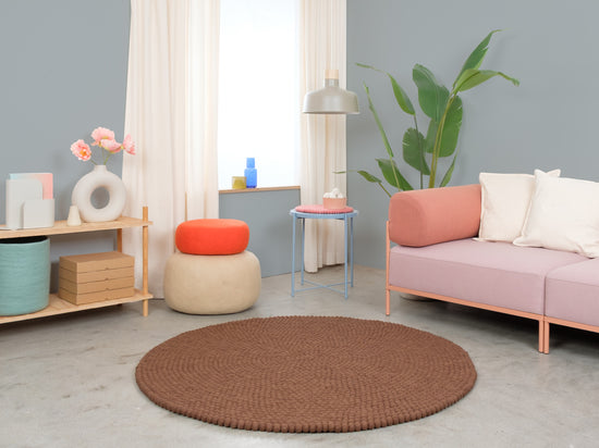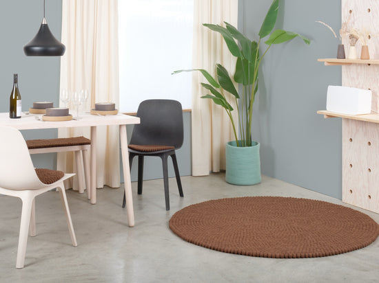 Egon satsar på varm chokladbrun. Filtbollsmattan förankrar varje rum, skapar trivsel och struktur. Perfekt för läshörnor och vardagsrum som behöver värme. Slitstark, formstabil och behaglig att gå på. Handgjord i Nepal – av 100 % ren ny ull.