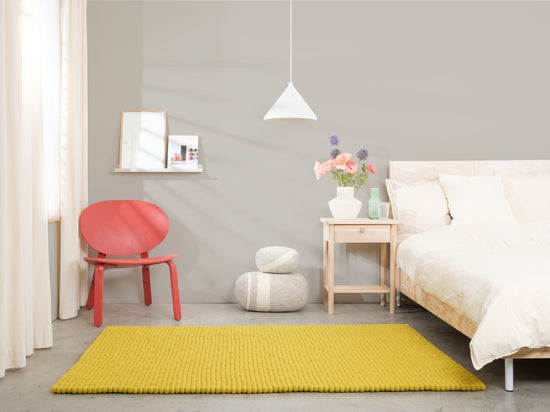 Kata är en filtbollsmatta i friskt gulgrönt. Ljus, vital och full av energi för den in rörelse i rummet. Som en glad accent i vardagsrummet eller en ljuspunkt i arbetsområdet. Kata skapar liv och lätthet. Mjuk, robust och lättskött. Handgjord i Nepal av 100 % ren ny ull.