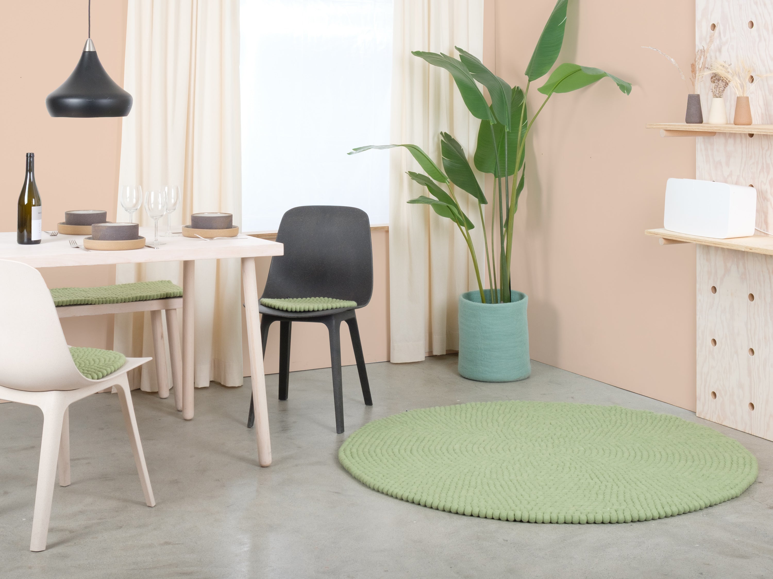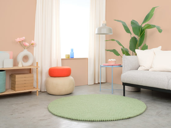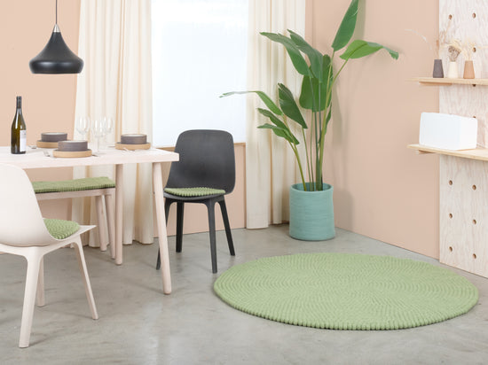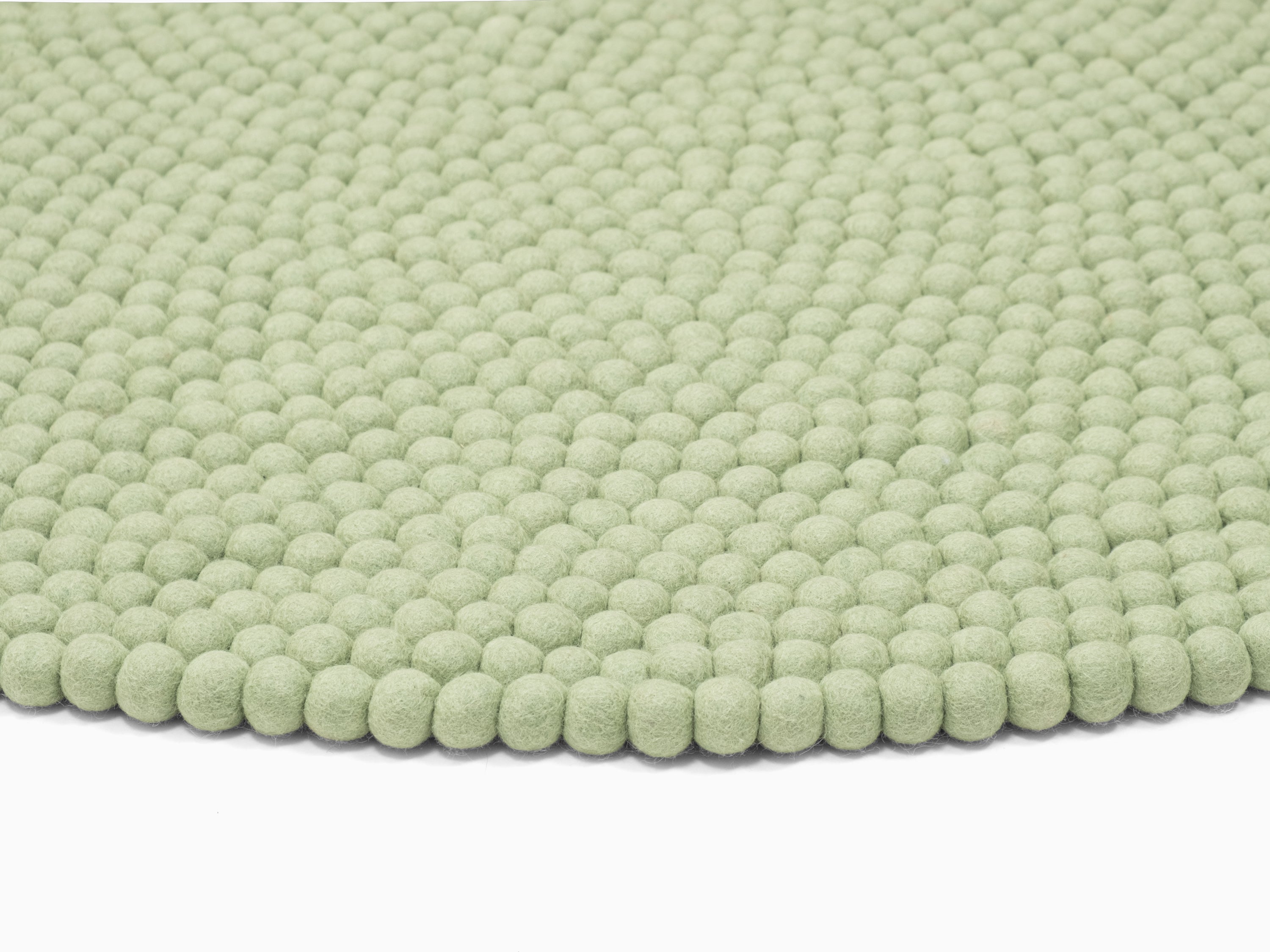 Lasse är en filtbollsmatta i mjukt salviagrönt. Den för in lugn och lätthet i rummet och harmonierar med trä, vitt och naturliga toner. Mjuk att gå på, robust i vardagen och naturligt smutsavvisande. Handgjord i Nepal av 100 % ren ny ull.