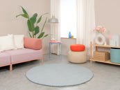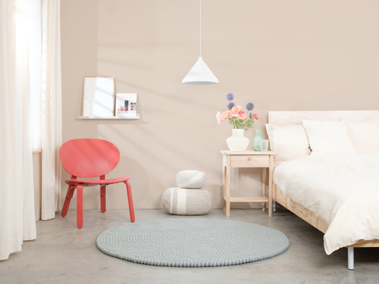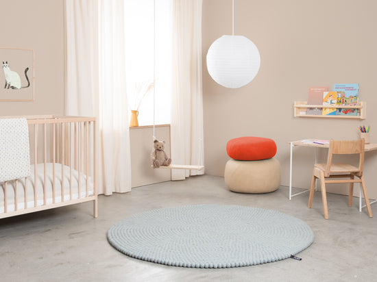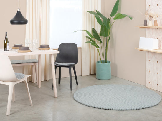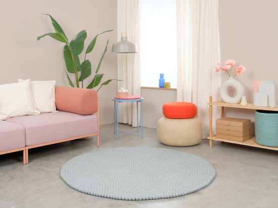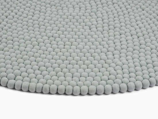 Liv är en filtbollsmatta i svalt ljusblått. Den för in klarhet och lätthet i rummet och får små utrymmen att kännas större. Passar till vitt, ek och neutrala toner – som en lugn bas eller en fräsch accent. Mjuk, ljuddämpande och naturligt smutsavvisande. Handgjord i Nepal av 100 % ren ny ull.