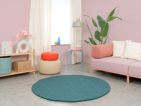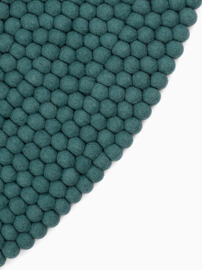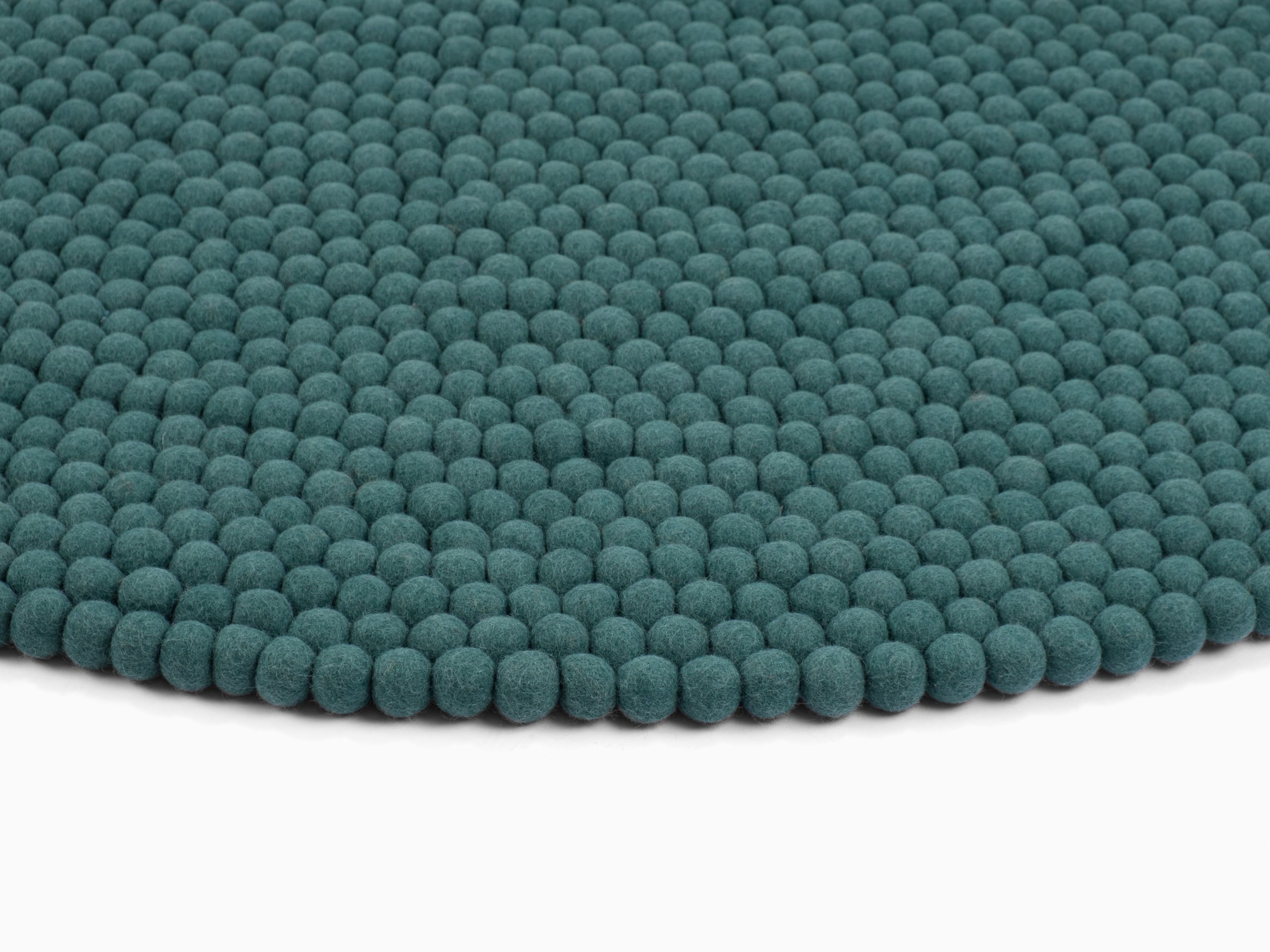 Noah är en filtbollsmatta i djup petrol. Kraftfull, klar och samtidigt lugnande – som ett statement eller en stillsam bas. Den passar till ljust trä, betong och neutrala färger. Märkbart mjuk, hållbar och lättskött. Handgjord i Nepal av 100 % ren ny ull.