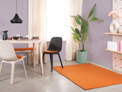 Afra för in en varm orange ton i rummet. Filtmattan känns inbjudande och energifylld utan att bli påträngande. Perfekt för att värma upp svala rum eller sätta accenter. Robust, lättskött och behaglig att gå på. Handgjord i Nepal – av 100 % ren ny ull.