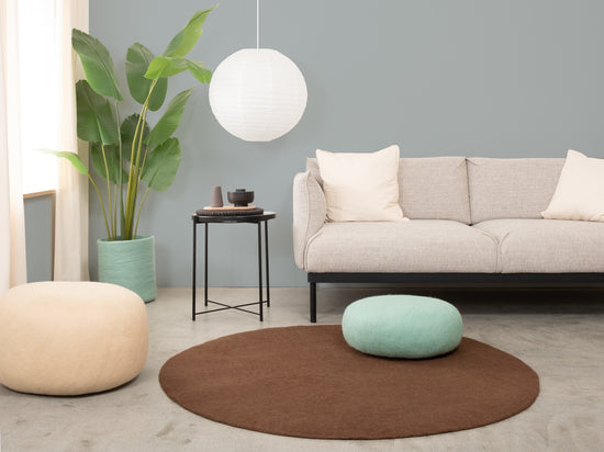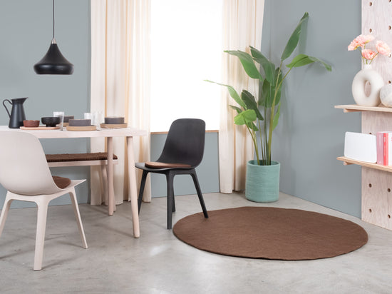 Egon går i varm chokladbrun. Mattan förankrar rummet och skapar trivsel och struktur. Perfekt för läshörnor och vardagsrum som vill ha mer värme. Slitstark, formstabil och skön att gå på. Handgjord i Nepal – 100 % ren ny ull.