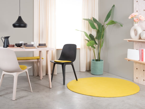 Kata är en filtmatta i fräscht gulgrönt. Ljus, livfull och full av energi – ger rörelse i rummet; en glad accent i vardagsrummet eller en ljuspunkt vid arbetsplatsen. Ger liv och lätthet. Mjuk, robust och lätt att sköta. Handgjord i Nepal av 100 % ren ny ull.