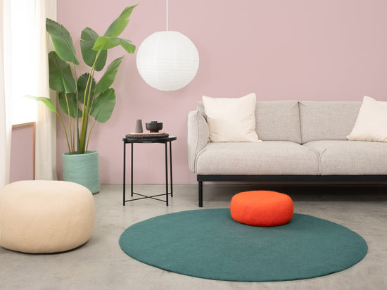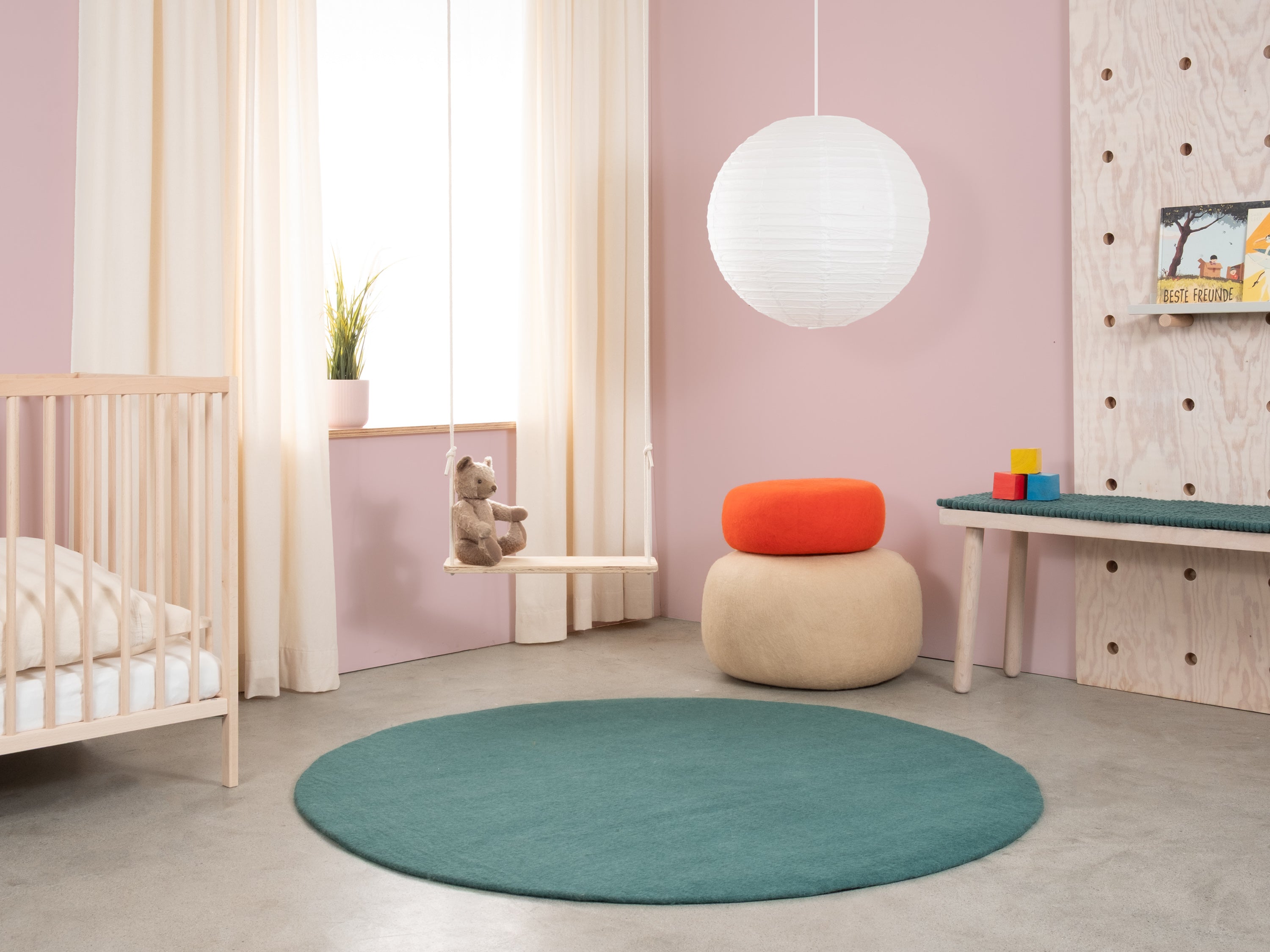 Noah är en filtmatta i djup petrol. Kraftfull, klar och ändå avkopplande – som statement eller lugn bas. Passar till ljust trä, betong och neutrala färger. Påtagligt mjuk, slitstark och lättskött. Handgjord i Nepal av 100 % ren ny ull.