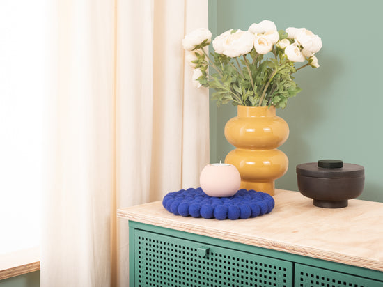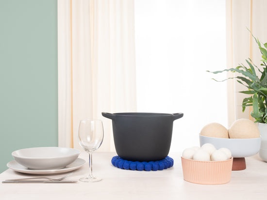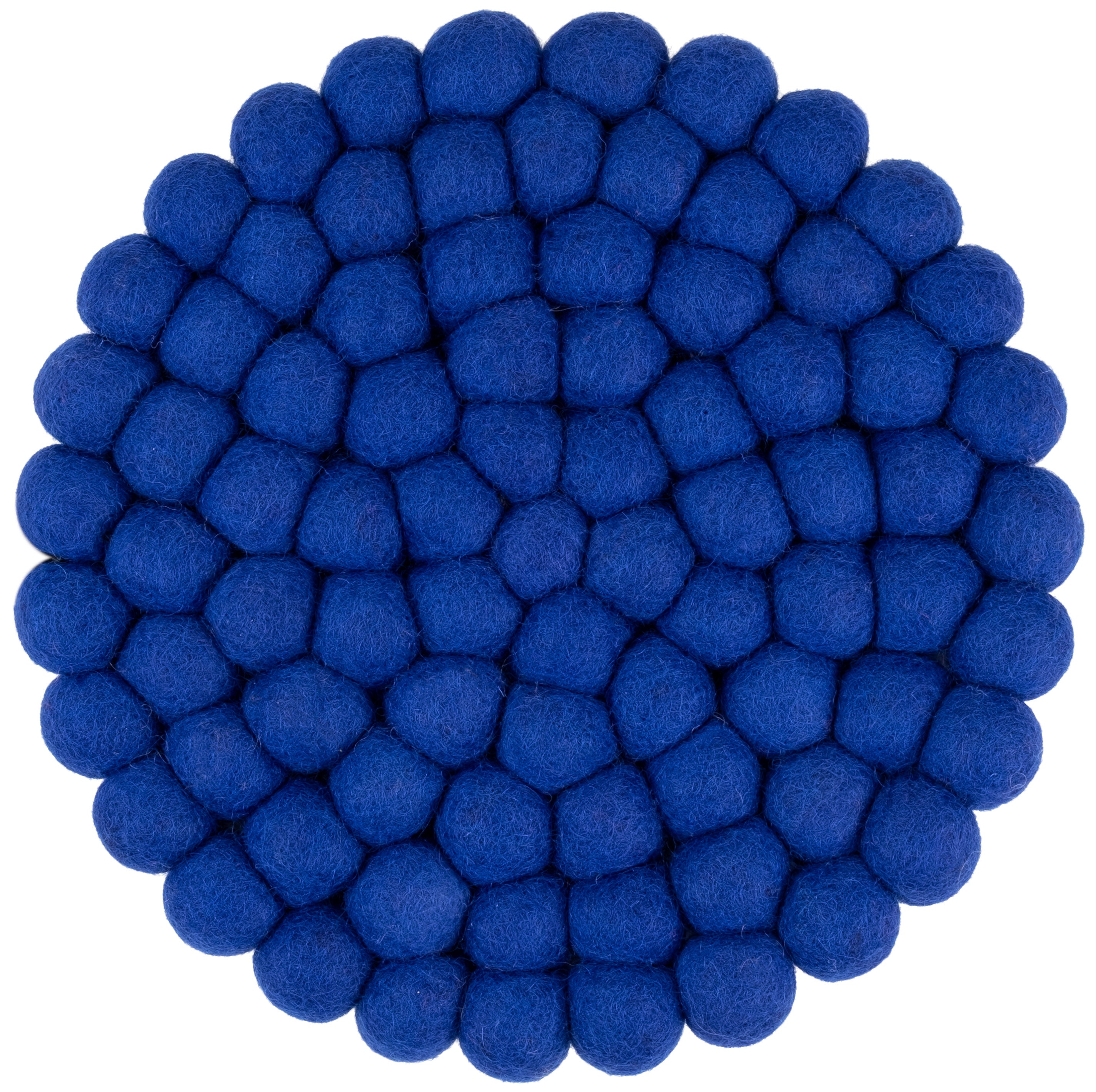 Runt, kungligt blått grytunderlägg av ren ny ull | myfelt