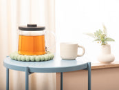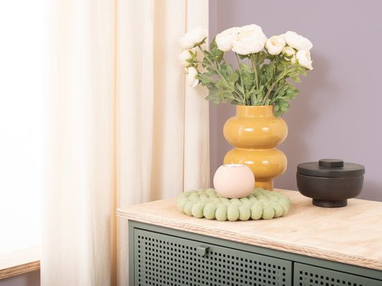 Runt, ljusgrönt grytunderlägg av ren ny ull | myfelt