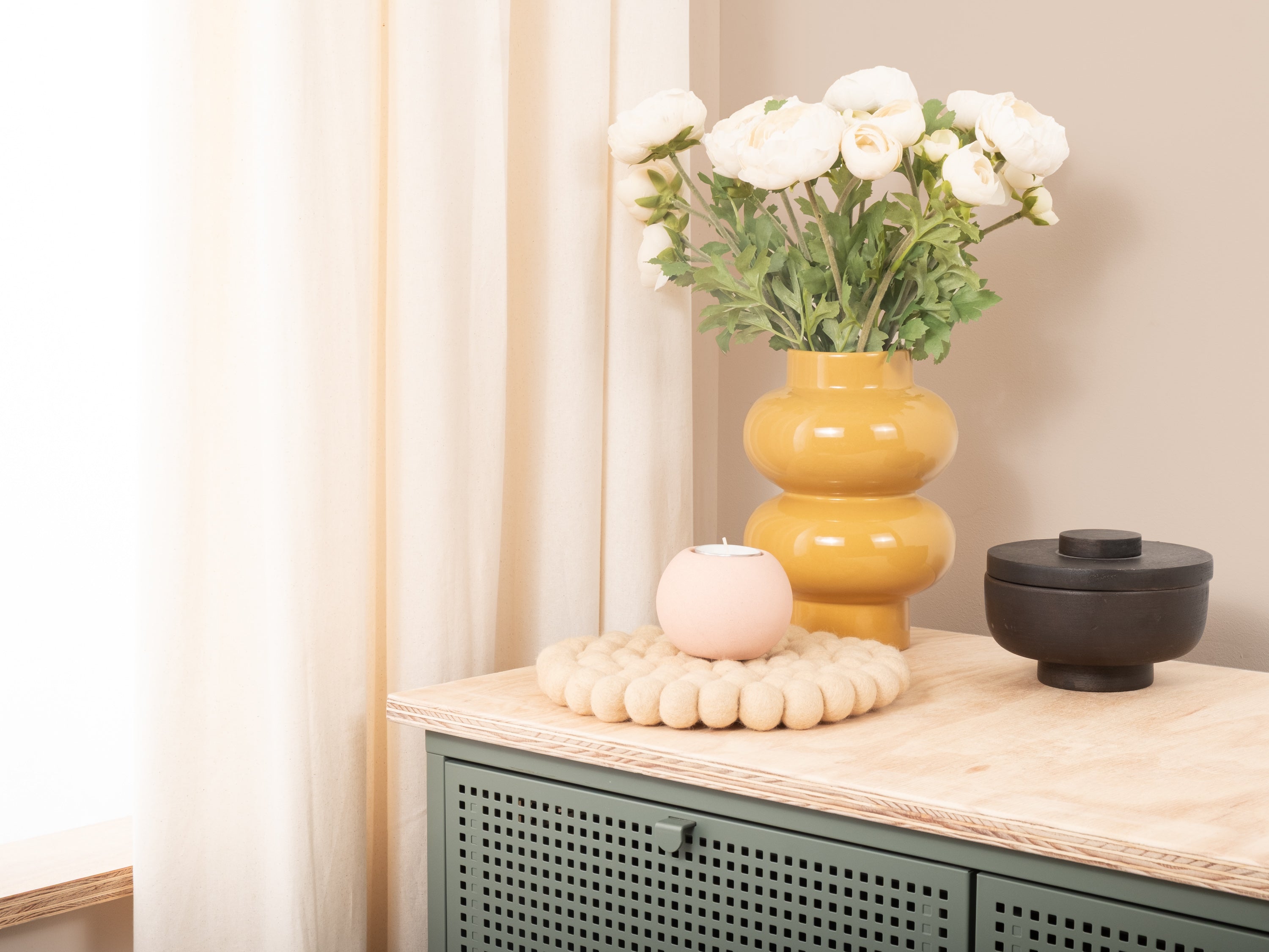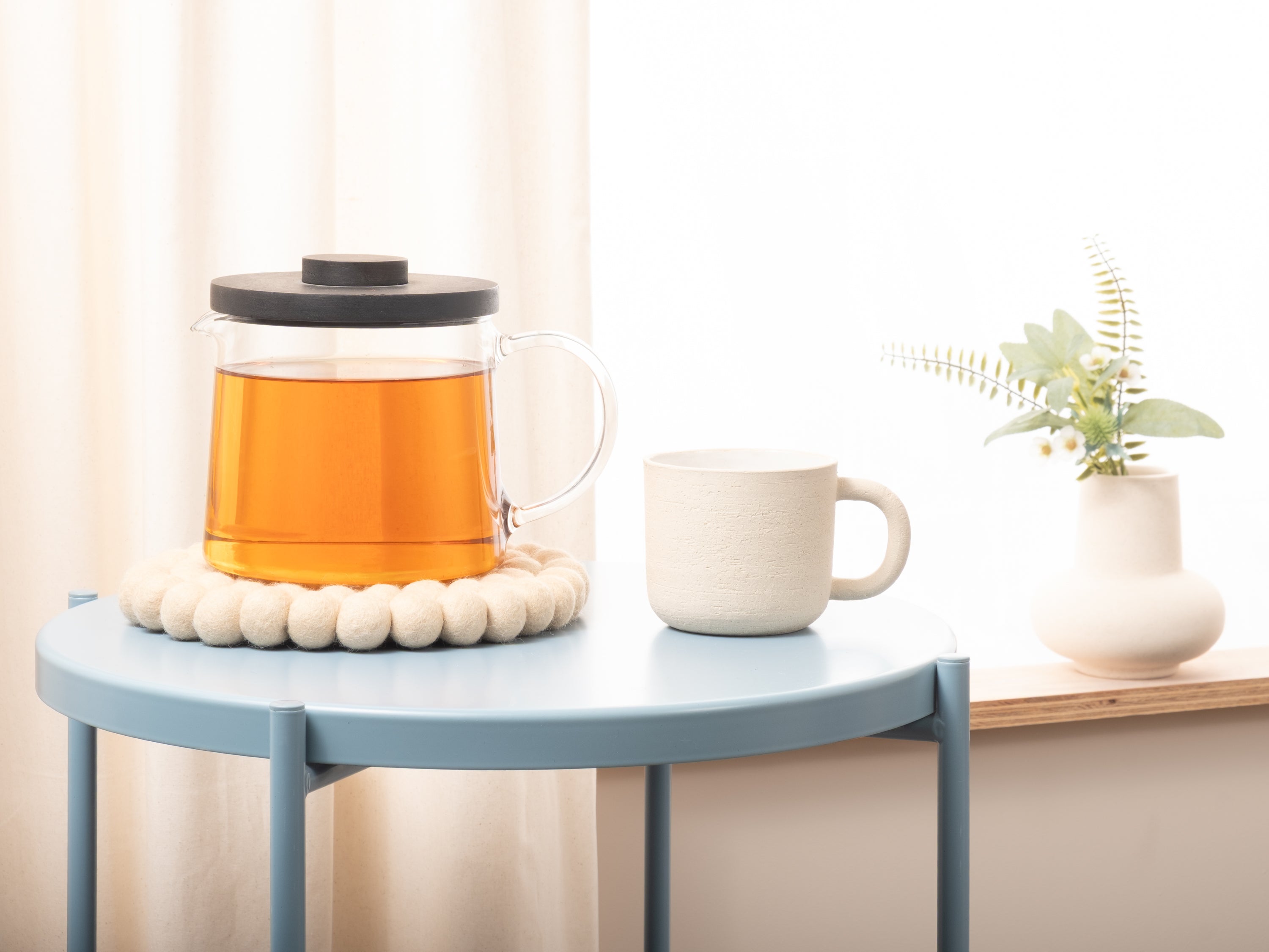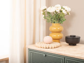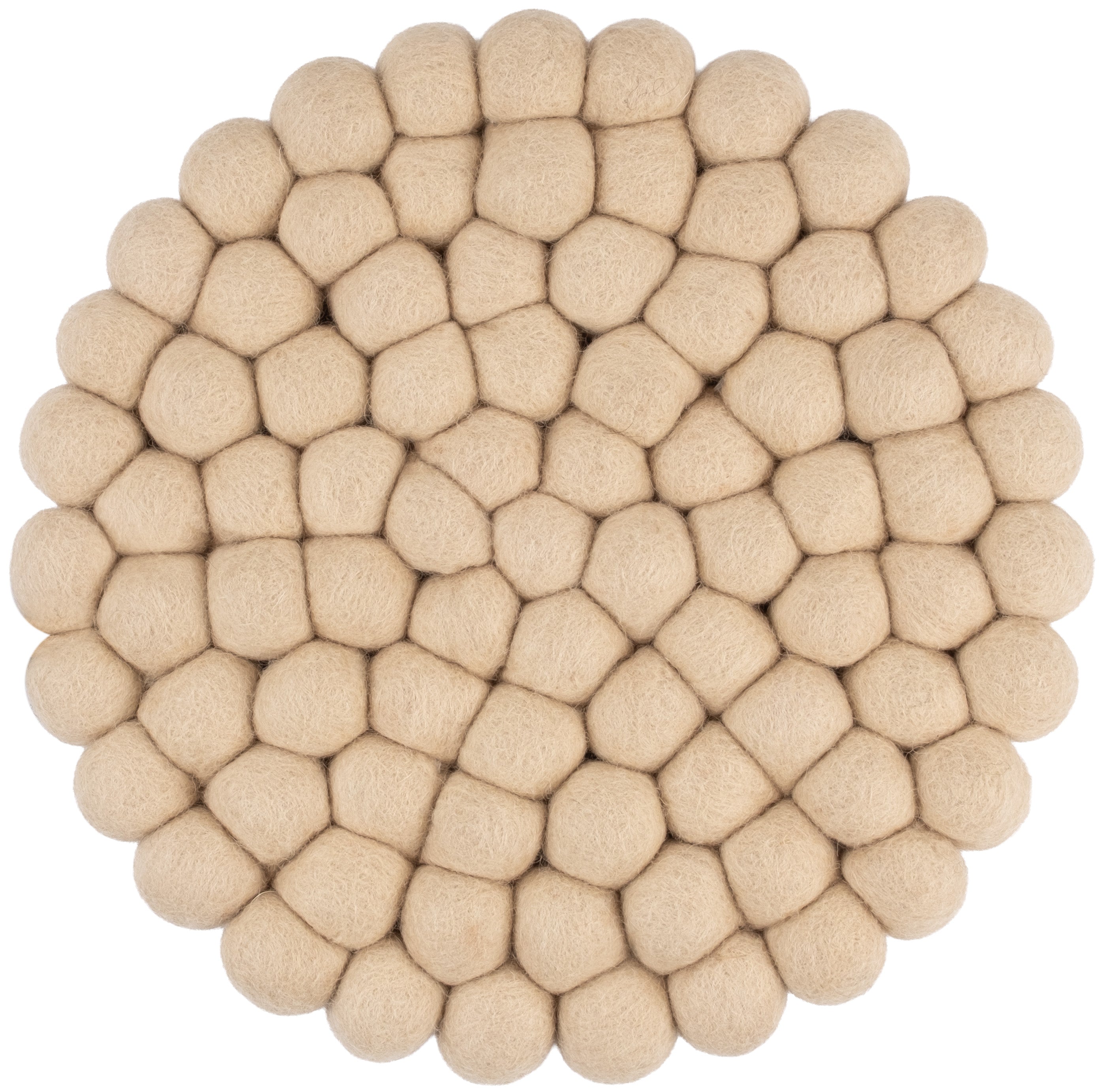 Runt, beige grytunderlägg av ren ny ull | myfelt