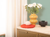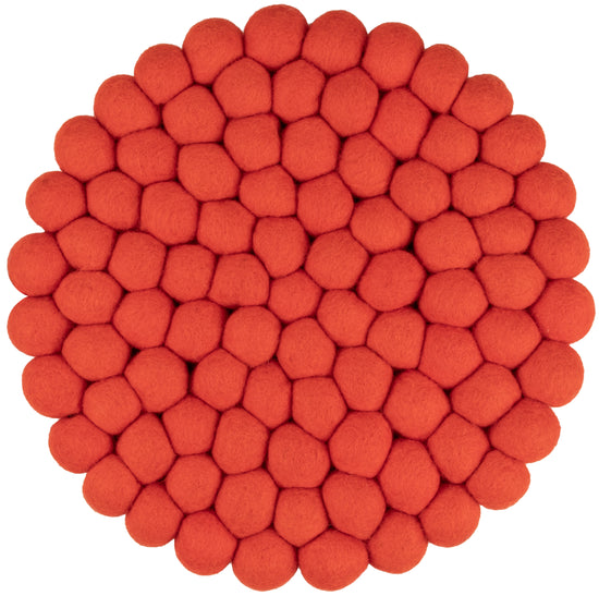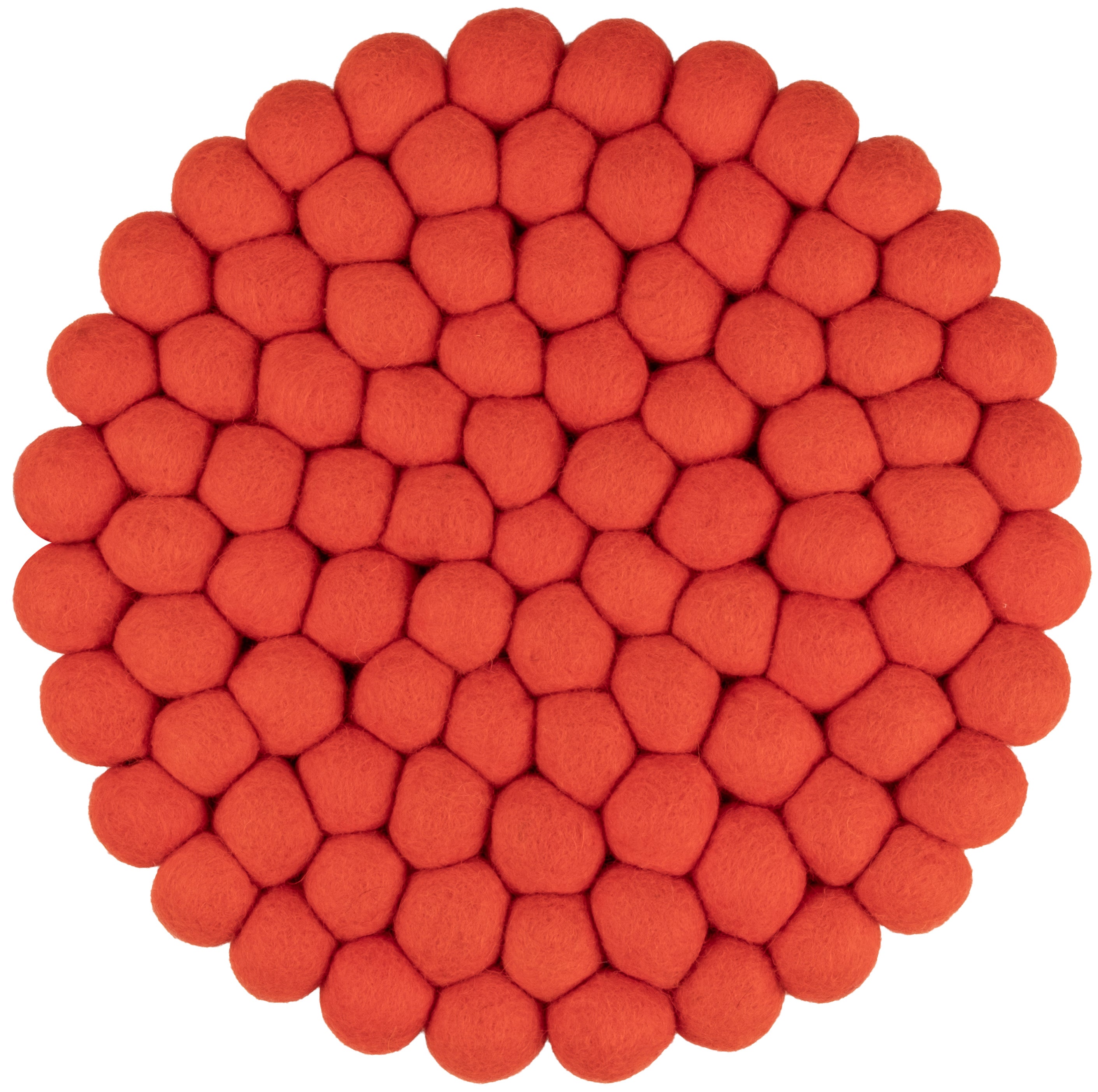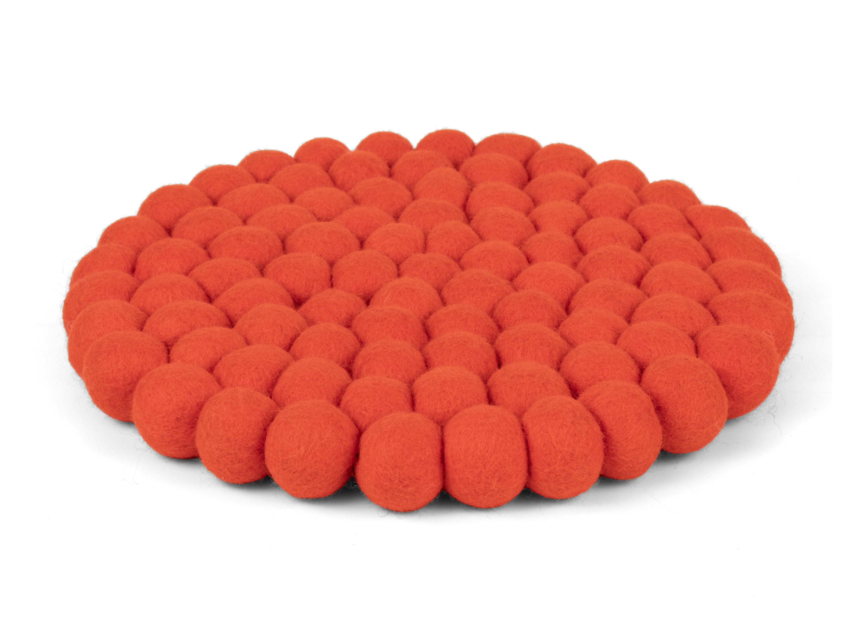 Runt, rödorange grytunderlägg av ren ny ull | myfelt