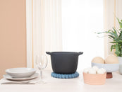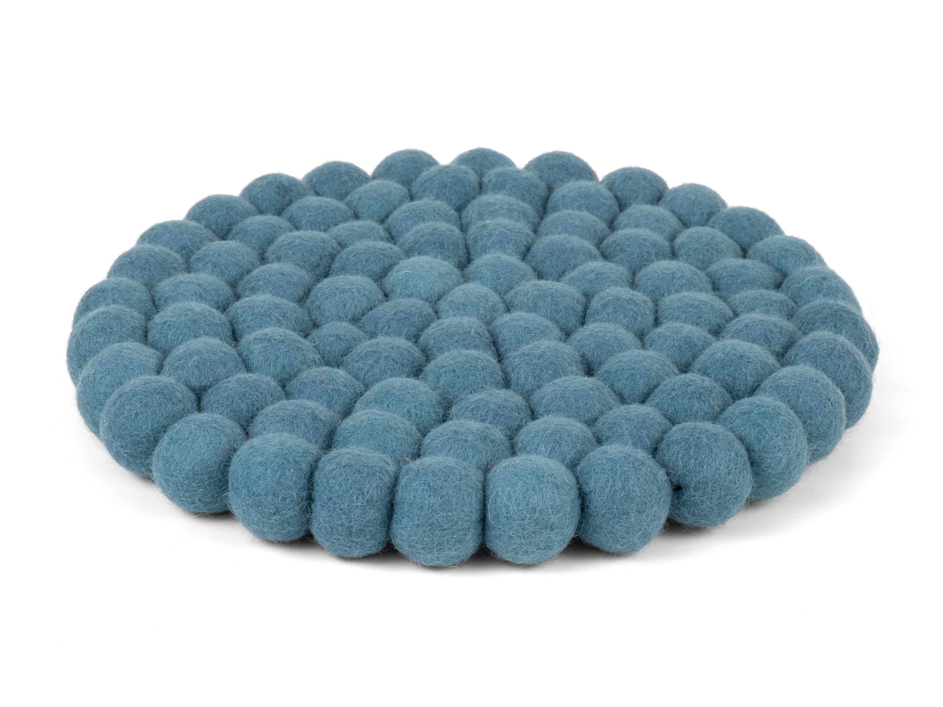 Grytunderlägget Nilo i färgen blå kombinerar funktion med en charmig design. Robust, värmetåligt, vatten- och smutsavvisande samt vändbart. Tillverkat av ren ny ull, handgjort i Nepal under rättvisa förhållanden.
