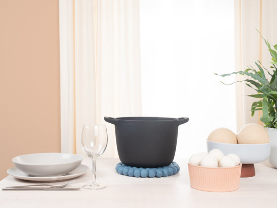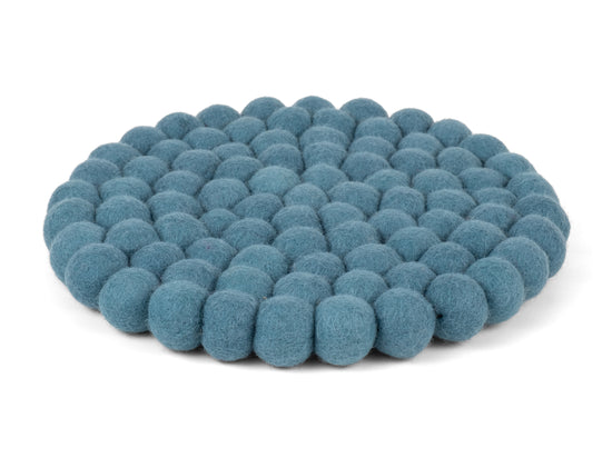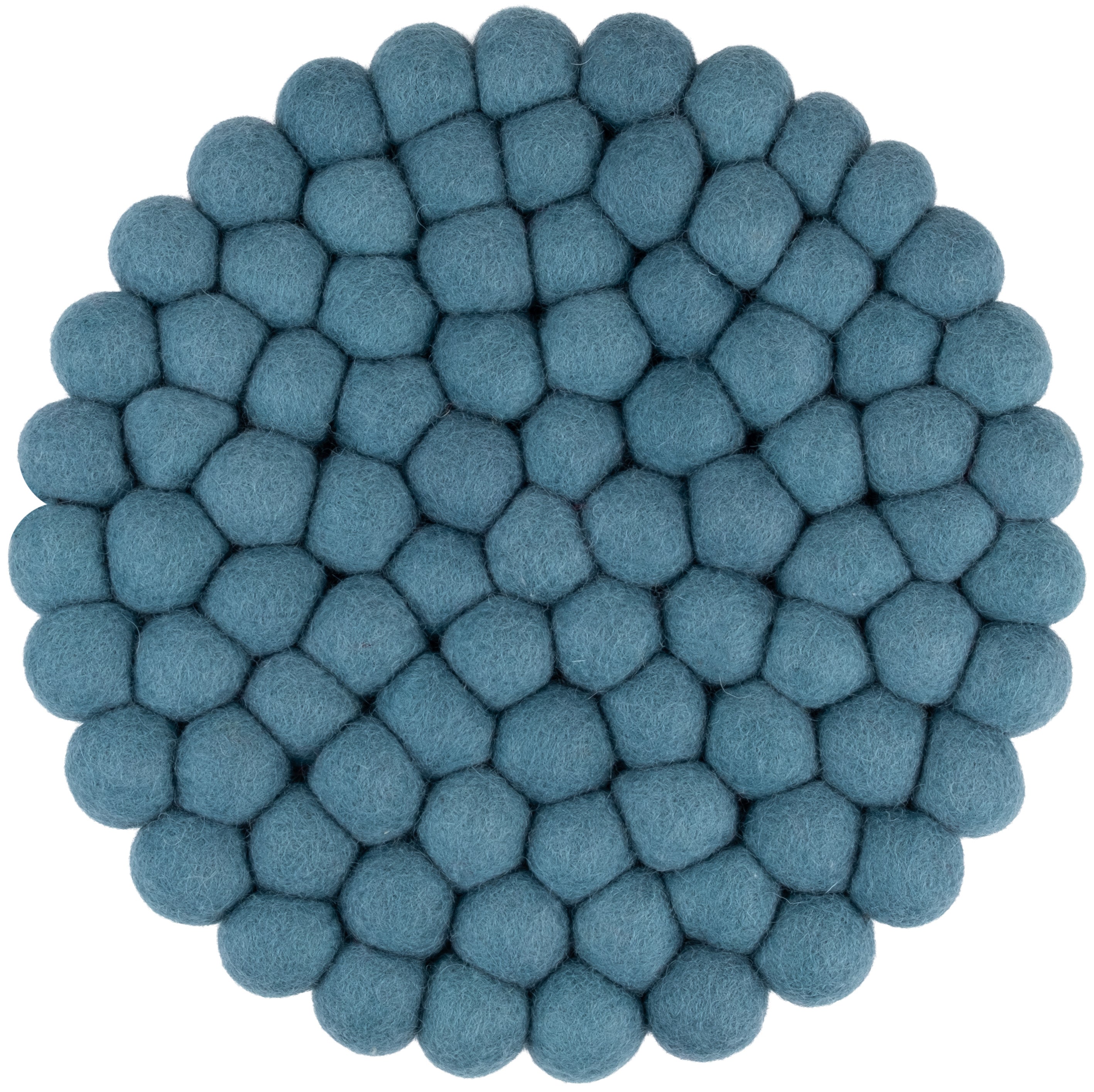 Runt, blått grytunderlägg av ren ny ull | myfelt