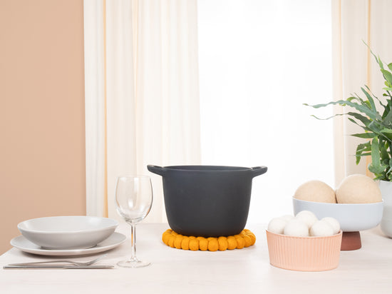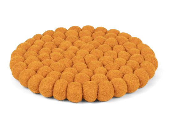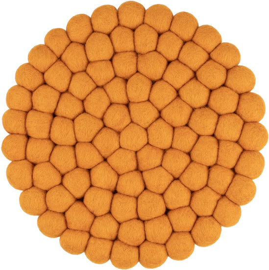Runt, ockergult grytunderlägg av ren ny ull | myfelt