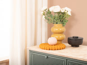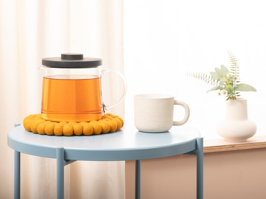 Grytunderlägget Risa i färgen ockergul kombinerar funktion med en charmig design. Robust, värmetåligt, vatten- och smutsavvisande samt vändbart. Tillverkat av ren ny ull, handgjort i Nepal under rättvisa förhållanden.